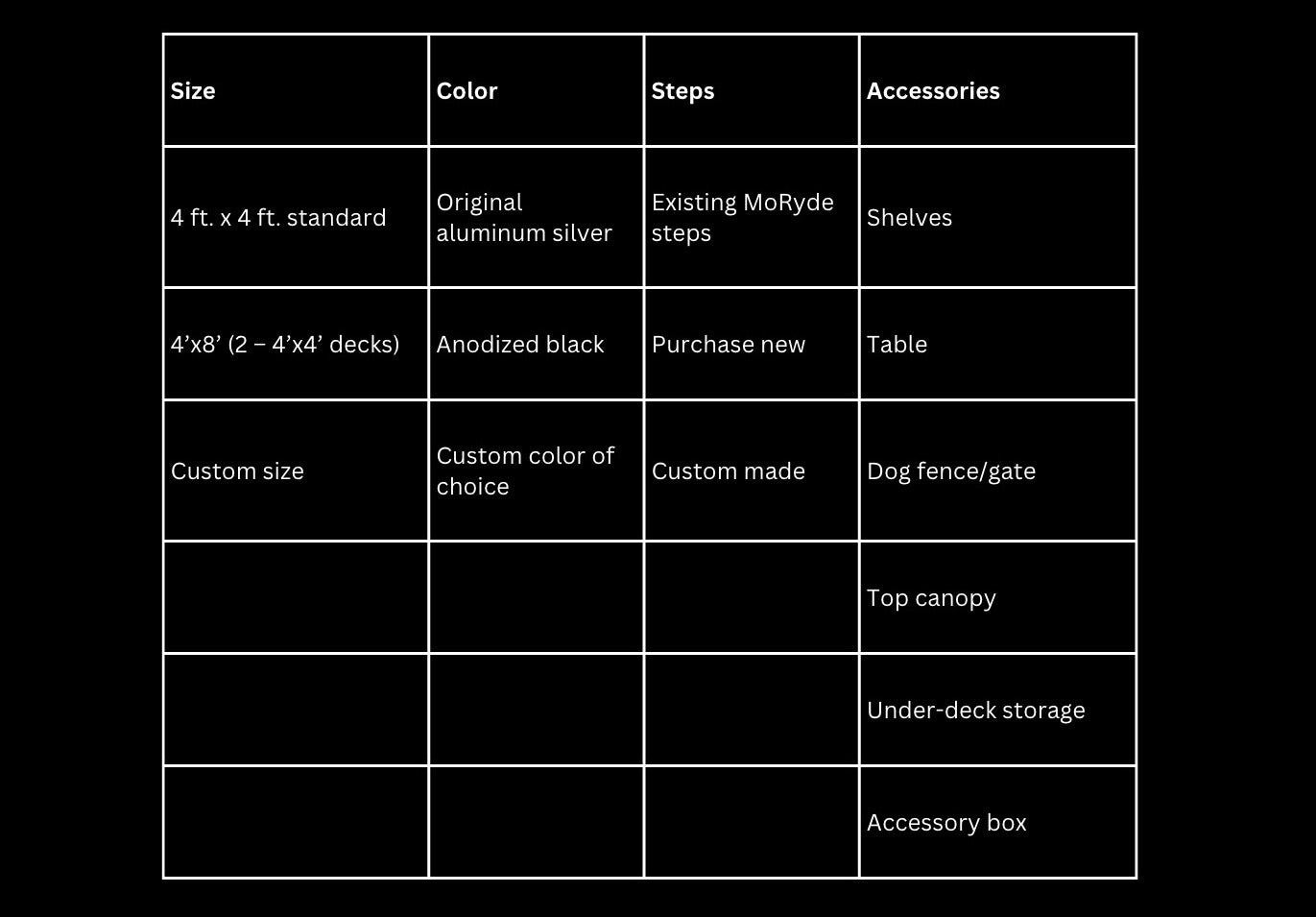 - Handrails - 3030 extrusion (1.18”) - 2 horizontal bars